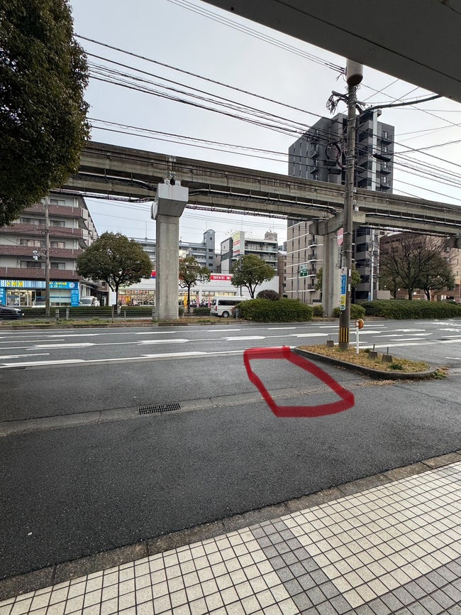 駐車場は院の目の前に2台ございますが、満車の場合はお写真の赤い印の部分にお車を停めて待機をしていただくことになります。